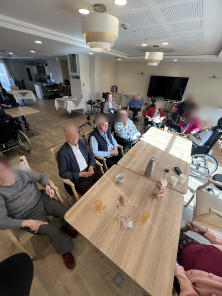 Ce matin au sein de l'Ehpad : café de l'amitié , accompagné d'un quiz musical des années 60 : un moment de partage et de souvenirs partagés !
